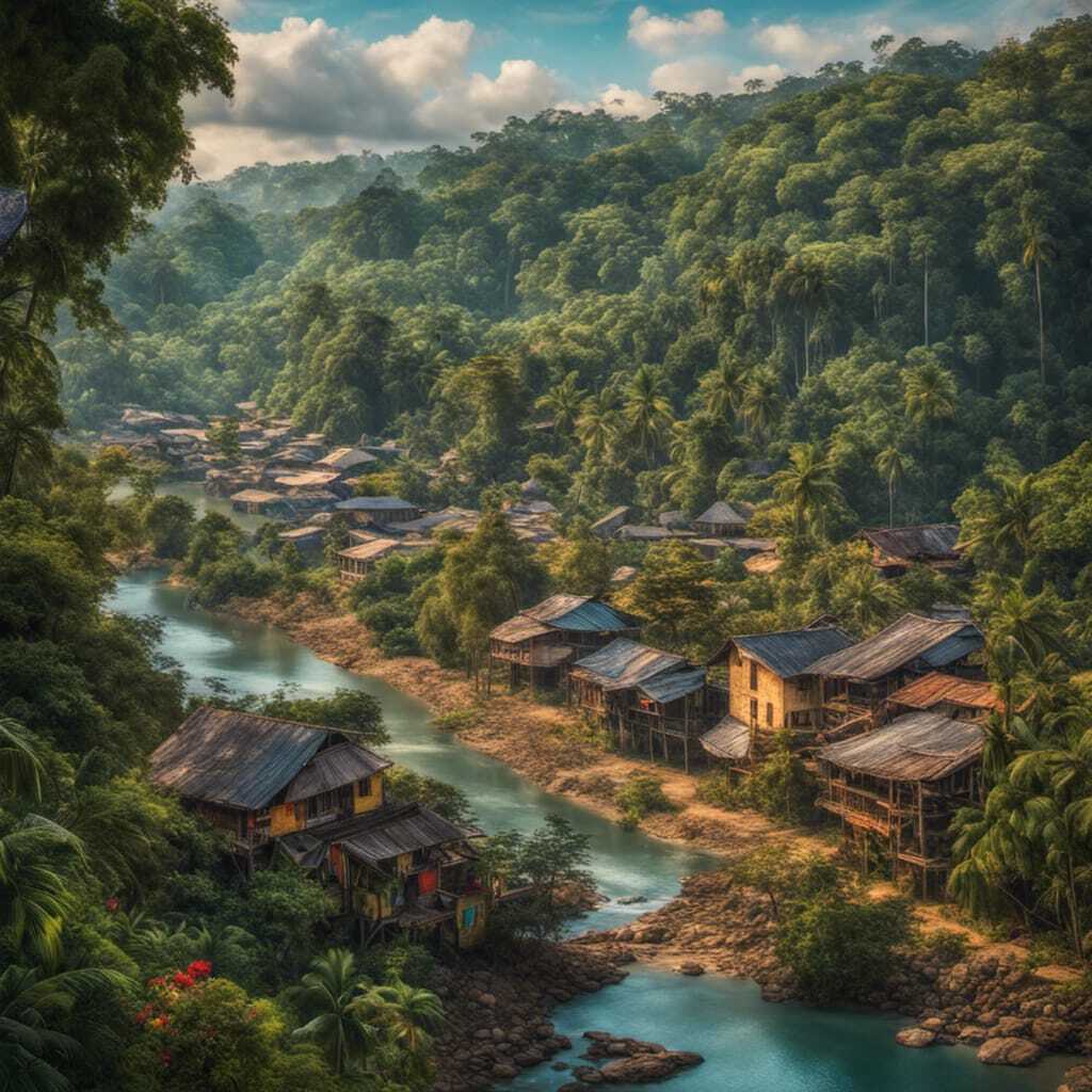 As we stand there catching our breathe we see an opening between the tree branches ahead, peering through we see a village along the amazon river with massive waterfalls all over, only itās daytime and the village is alive with people and has a feeling of abundance.